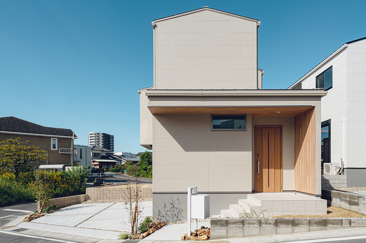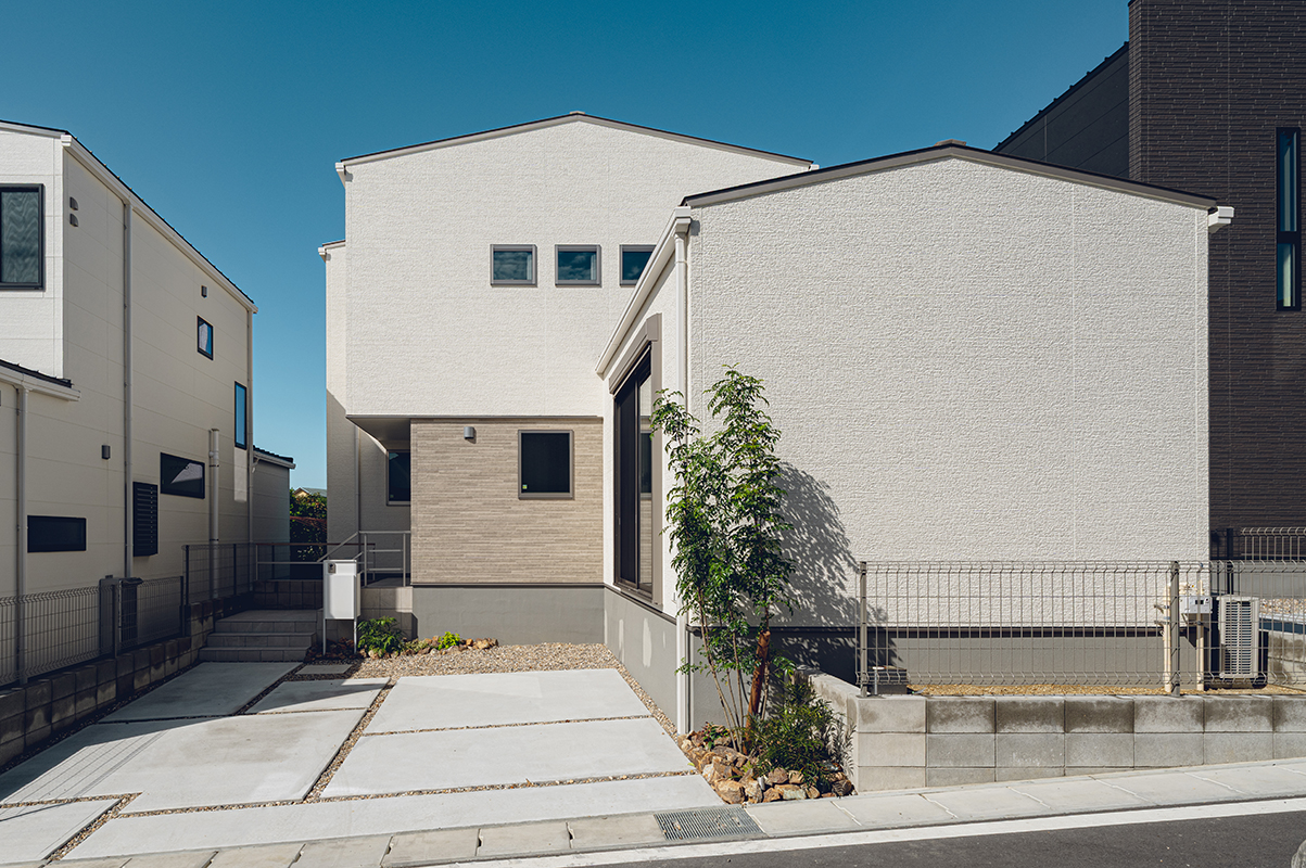 名鉄名古屋本線「牛田」駅まで徒歩約7分。保育園や小学校、緑豊かな公園も近く、子育て家族に嬉しい住環境です。AREXの建築家がデザインしたコンセプトハウス5邸、堂々完成です。