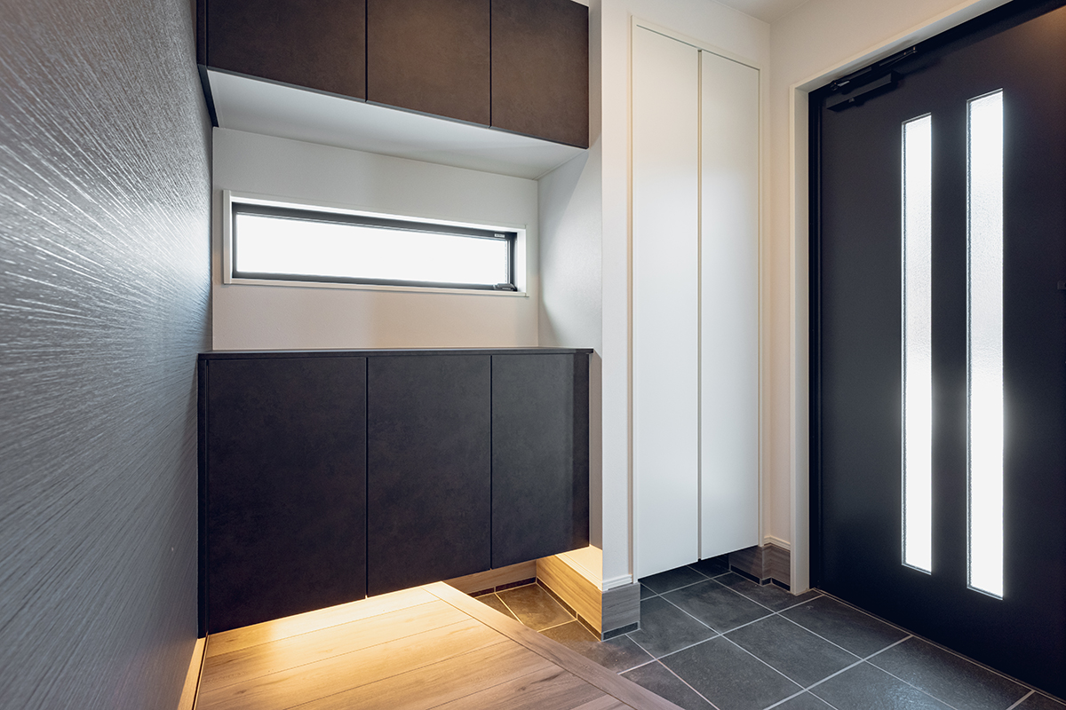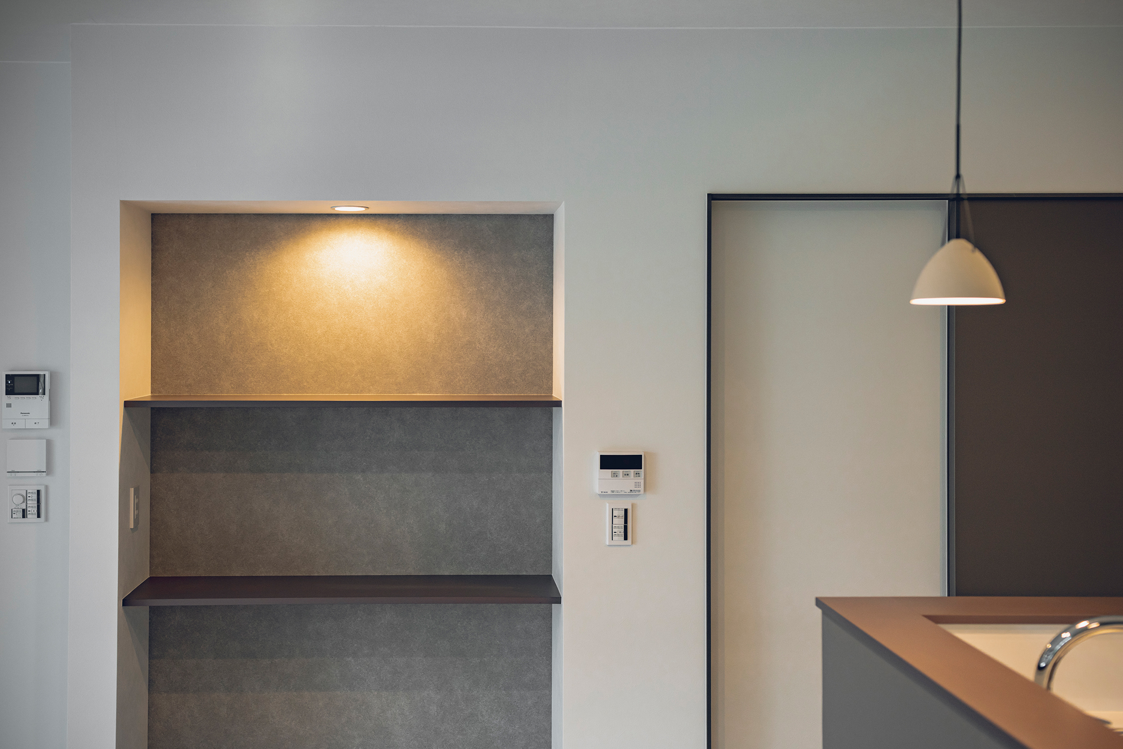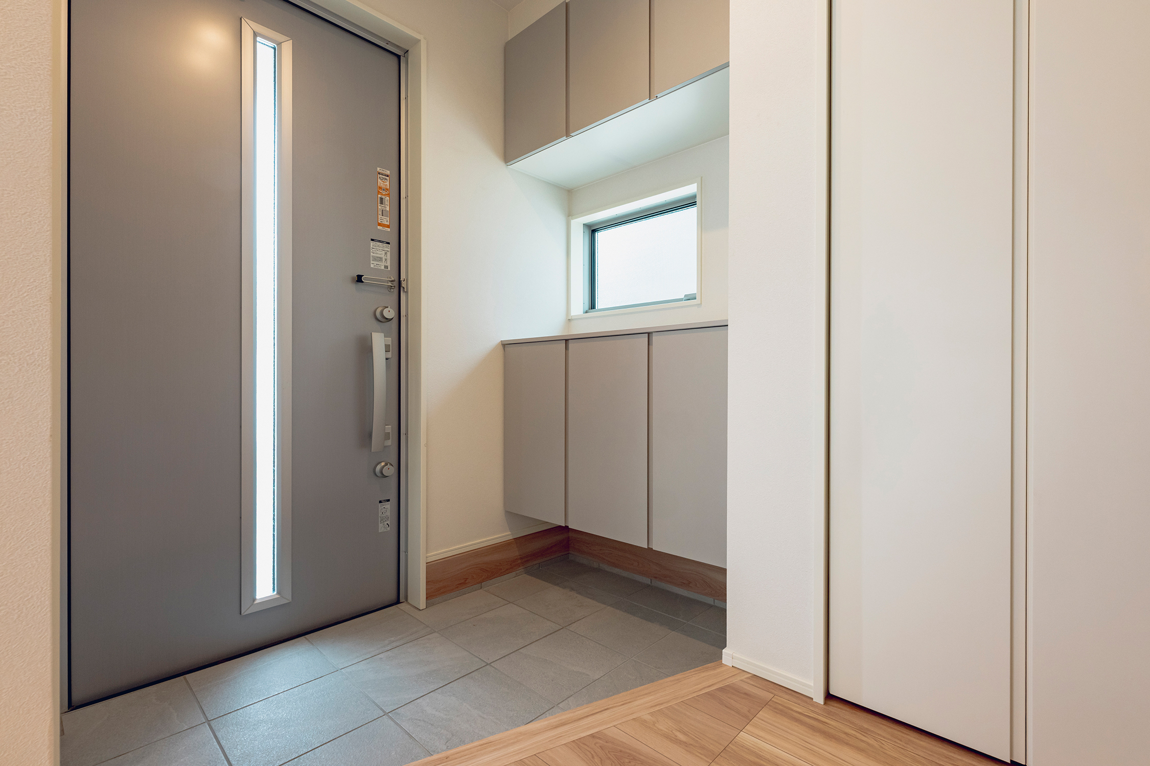 パントリーや広々ウォークインクローゼットなど、収納力が魅力の住まいです。2帖あるパントリーを計画し、キッチンと洗面室に隣接させて回遊性を持たせることで、家事動線の軽減を図りました。