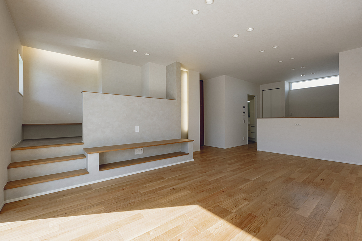 また本がたっぷりと入る収納やコンセントも常備しているため、使い勝手も抜群。小上がりの段差に腰かけて家族で談笑することも可能です。温かな光が降りそそぐ、開放的なヌックとなっています。