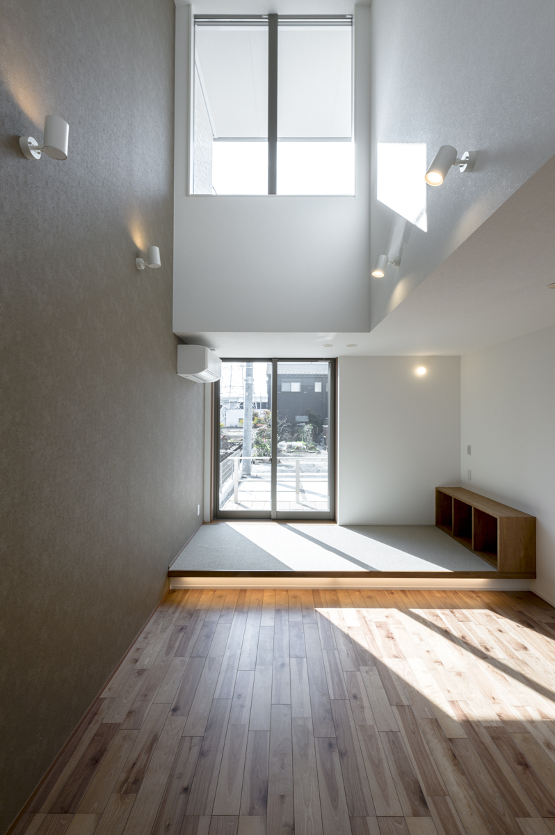 ヌックスペースを小上がりにし、床にカーペットを敷くことで大人の読書スペースから子どもの遊び場まで多様に変容する空間をつくりました。上部には吹き抜けを計画し、さらに窓際に設置することで、部屋の奥まで光が届く工夫をしています。寝ころぶこともできるゆったりとした空間で、のんびりと自分時間を楽しめるでしょう。