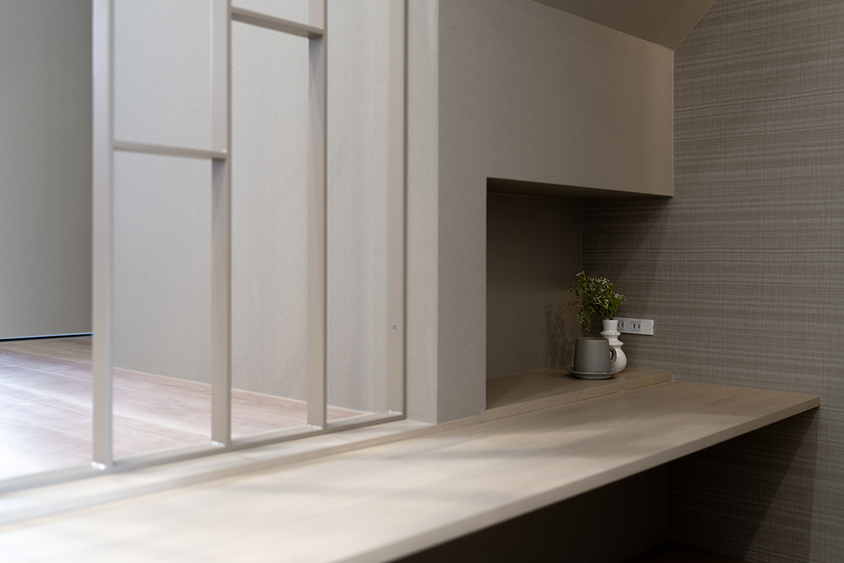 デスクも造作しており、勉強やリモートワーク、読書や家事など様々な用途で使用できます。暖かみのある間接照明を採用し、隠れ家のような「おこもり空間」を演出することで、ふと時間を忘れてしまう隠れ家のようなヌックが完成しました。
