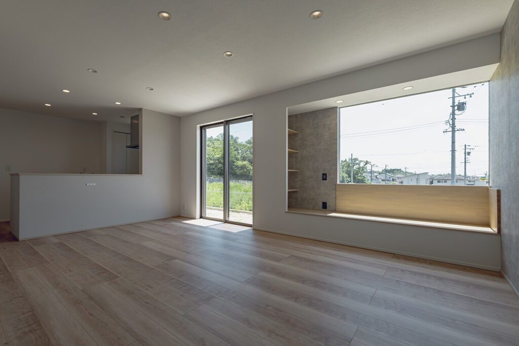 陽光が柔らかく差し込む心地よい空間となっており、読書やワーク、子どもの遊び場など多用途に機能し、暮らしに豊かさと広がりを添えてくれる。