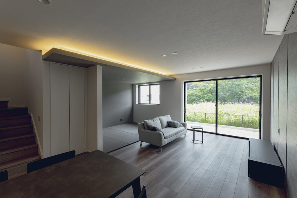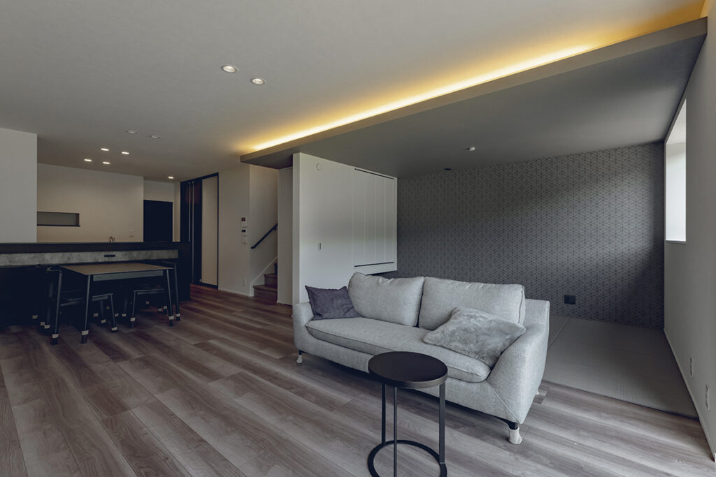 そんな置き畳をLDKとつながるオープンな空間に採用し、ライフステージに柔軟に対応できる住まいを設計した。
