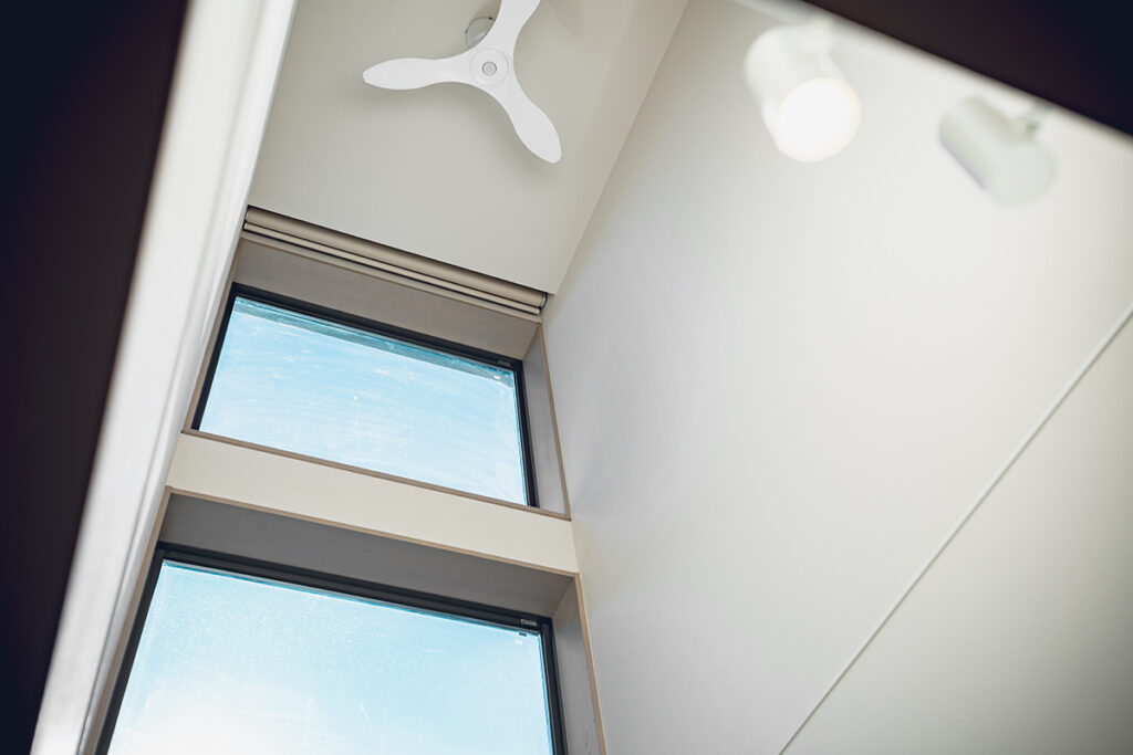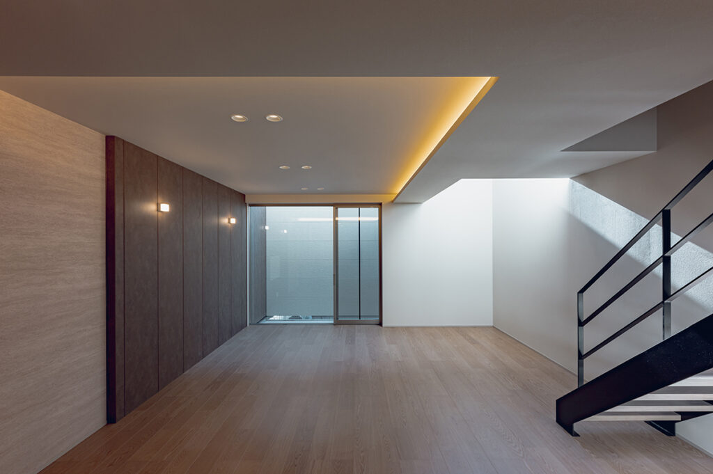 時間とともに移ろう陰影が空間に豊かな表情を演出し、光の変化が日常にリズム感を与え、住まいに奥行きと動きを与えている。